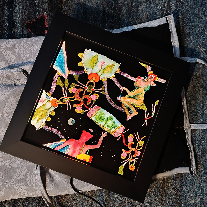 Tento typ obrazu je zevnitř osazený soustavou LED žároviček s neutrální teplotou bílého světla. Intenzita jasu se dá snadno regulovat, v noci může fungovat jako lampička nebo světelný prvek interiéru. Součástí je adaptér na 12V s kabelem a vypínačem – regulátorem jasu. Za přítomnosti přirozeného denního světla v místnosti není nutné obraz rozsvěcovat, motiv je viditelný i bez zapnutého vnitřního osvětlení.