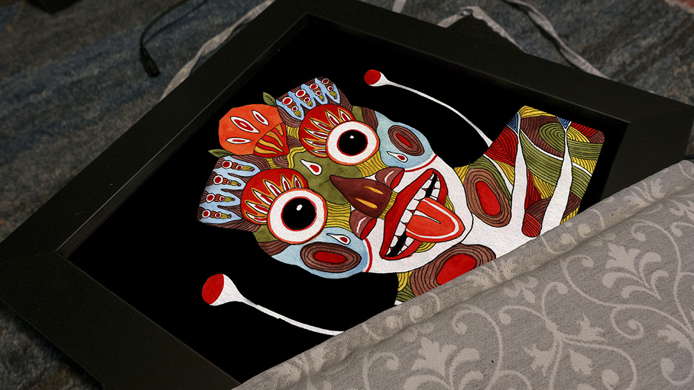 Obraz s vnitřním zdrojem světla s motivem akvarelu „Můj démon“
