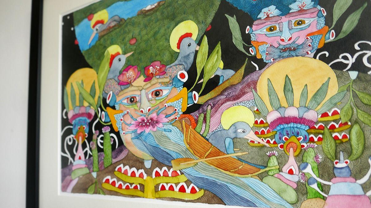 Akvarel v paspartě, antireflexní sklo s UV filtrem, černý dřevěný rám Nielsen.