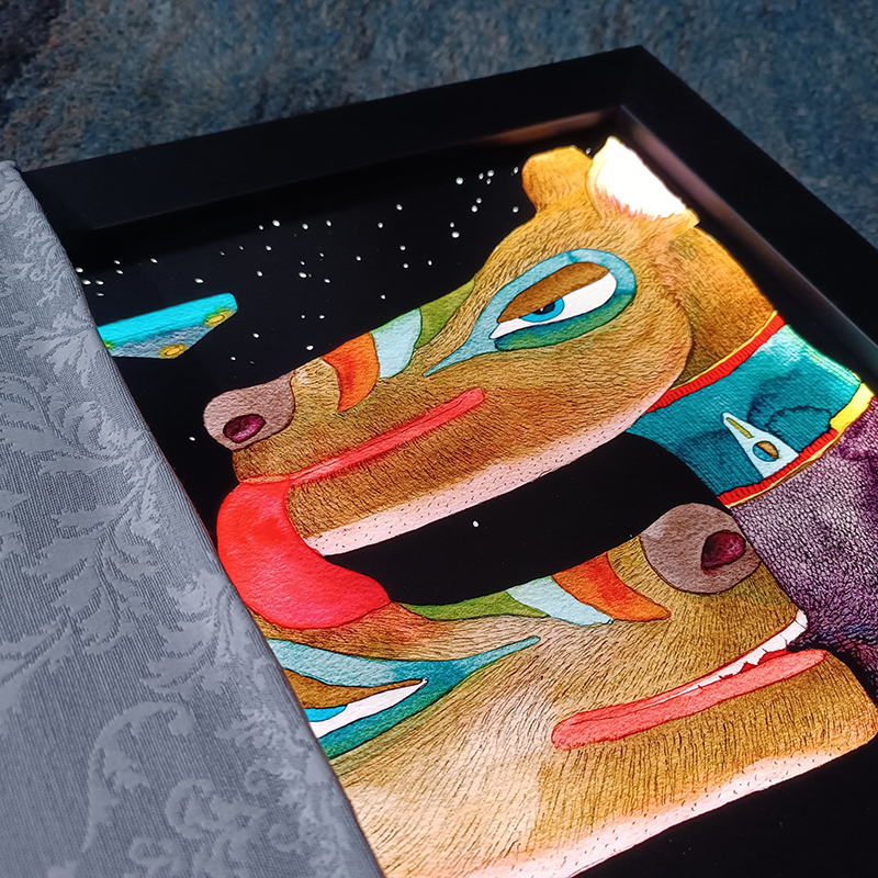 Tento typ obrazu je zevnitř osazený soustavou LED žároviček s neutrální teplotou bílého světla. Intenzita jasu se dá snadno regulovat, v noci může fungovat jako lampička nebo světelný prvek interiéru. Součástí je adaptér na 12V s kabelem a vypínačem – regulátorem jasu. Za přítomnosti přirozeného denního světla v místnosti není nutné obraz rozsvěcovat, motiv je viditelný i bez zapnutého vnitřního osvětlení.