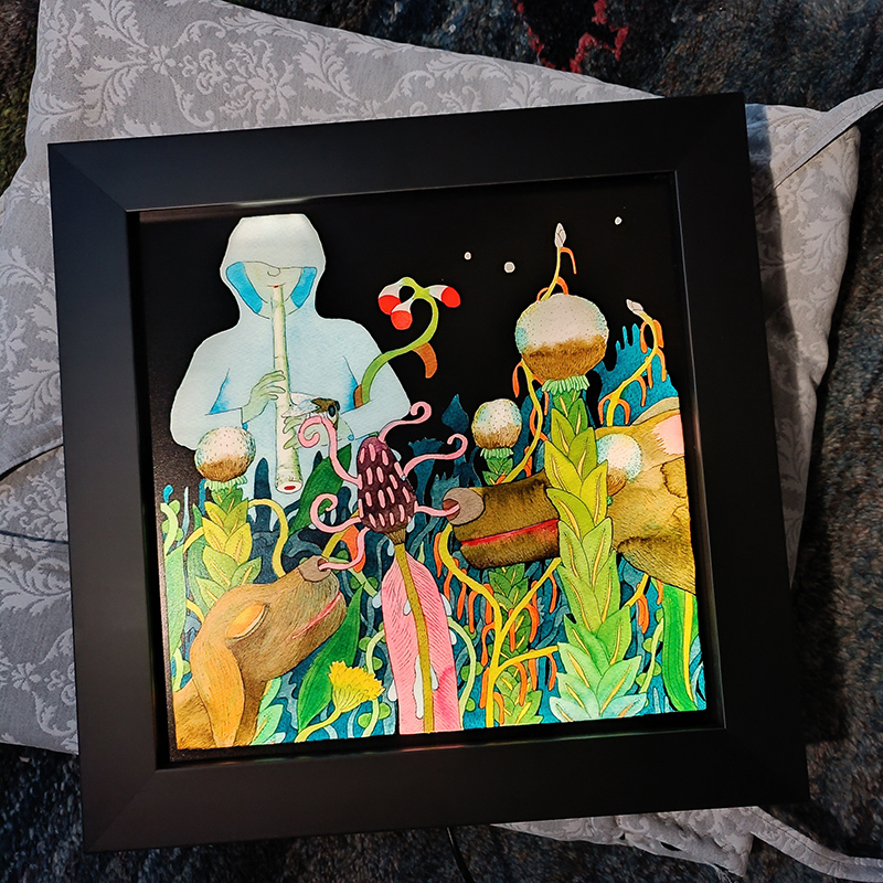 Obraz s vnitřním zdrojem světla s motivem akvarelu „Prázdnota tužeb“