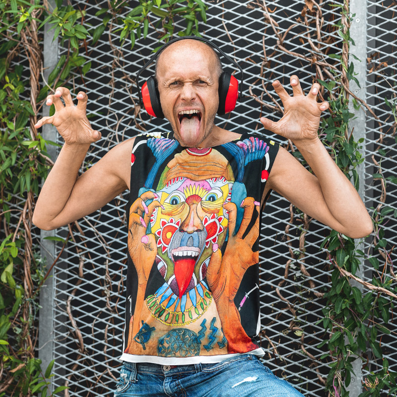 Unisex tričko s motivem Městského čerta se skládá se dvou dílů, přičemž přední část s digitálním potiskem je recykl. PES s elastanem a zadní díl z jednobarevného černého bavlněného úpletu (93% bavlna, 7% elastan).